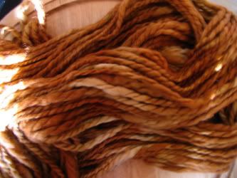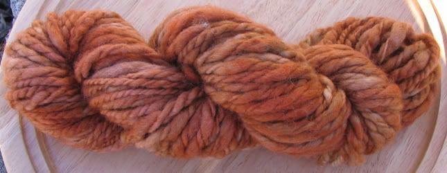 Coppery is 74 yards of 2-ply Blue Faced Leicester. It was spun and plied on my Schacht top/bottom whirl spindle.
